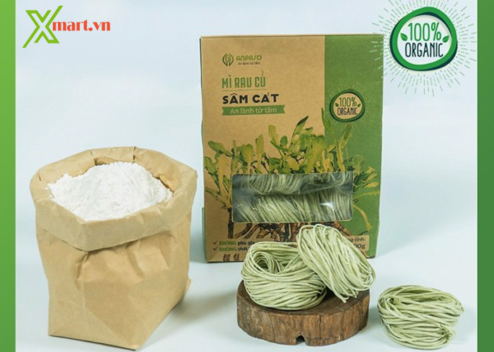 Mì rau củ Sâm cát Oraganic Anpaso là sản phẩm mì rau củ hữu cơ 5K đầu tiên tại Việt Nam, được cấp chứng nhận an toàn bởi tổ chức FDA Hoa Kỳ. Với quy trình sản xuất khép kín và chặt chẽ từ khâu tuyển chọn hạt giống, gieo trồng hữu cơ phải theo tiêu chuẩn Organic. Quy trình thu hái và chế biến hoàn toàn trong môi trường an toàn vệ sinh thực phẩm. Mì rau củ Sâm Cát được làm khô bằng công nghệ sấy lạnh, sấy phun không làm mất đi những giá trị dinh dưỡng của nguyên liệu. Cùng công thức bí truyền và sự cố vấn về chuyên môn của chuyên gia đến từ Nhật Bản, mang tới những sợi mì rau củ: Không chất phụ gia, Không chất bảo quản, Không chất tạo màu, Không chiên qua dầu, Không bị nóng.